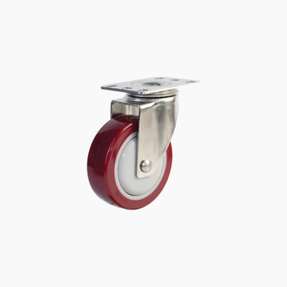 Bánh xe đẩy nhựa PU đỏ CP028 xoay càng inox