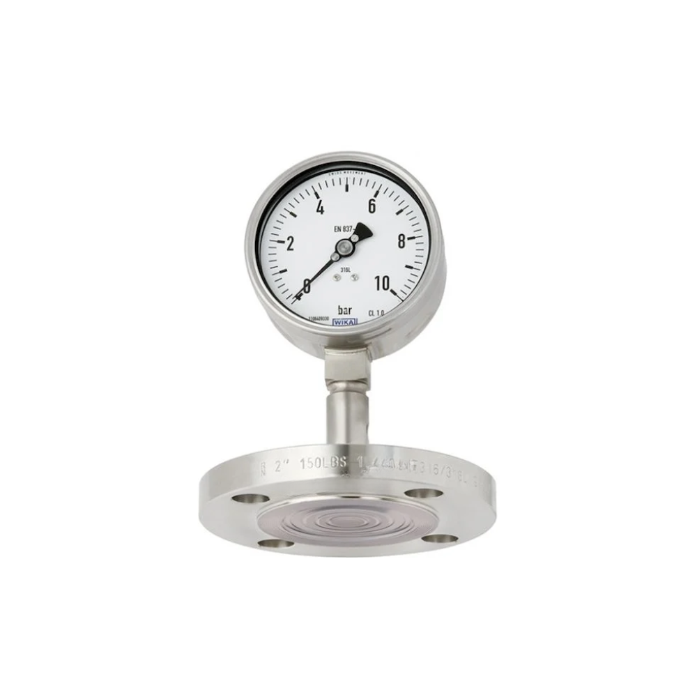 Đồng Hồ Đo Áp Suất WIKA Có Màng là một loại đồng hồ đo áp suất đặc biệt, được thiết kế để đo áp suất của các chất lỏng hoặc khí có tính ăn mòn, nhớt hoặc chứa các hạt rắn. Phần tử cảm biến của đồng hồ là một màng đàn hồi, giúp bảo vệ bộ phận đo bên trong khỏi tiếp xúc trực tiếp với môi trường đo.