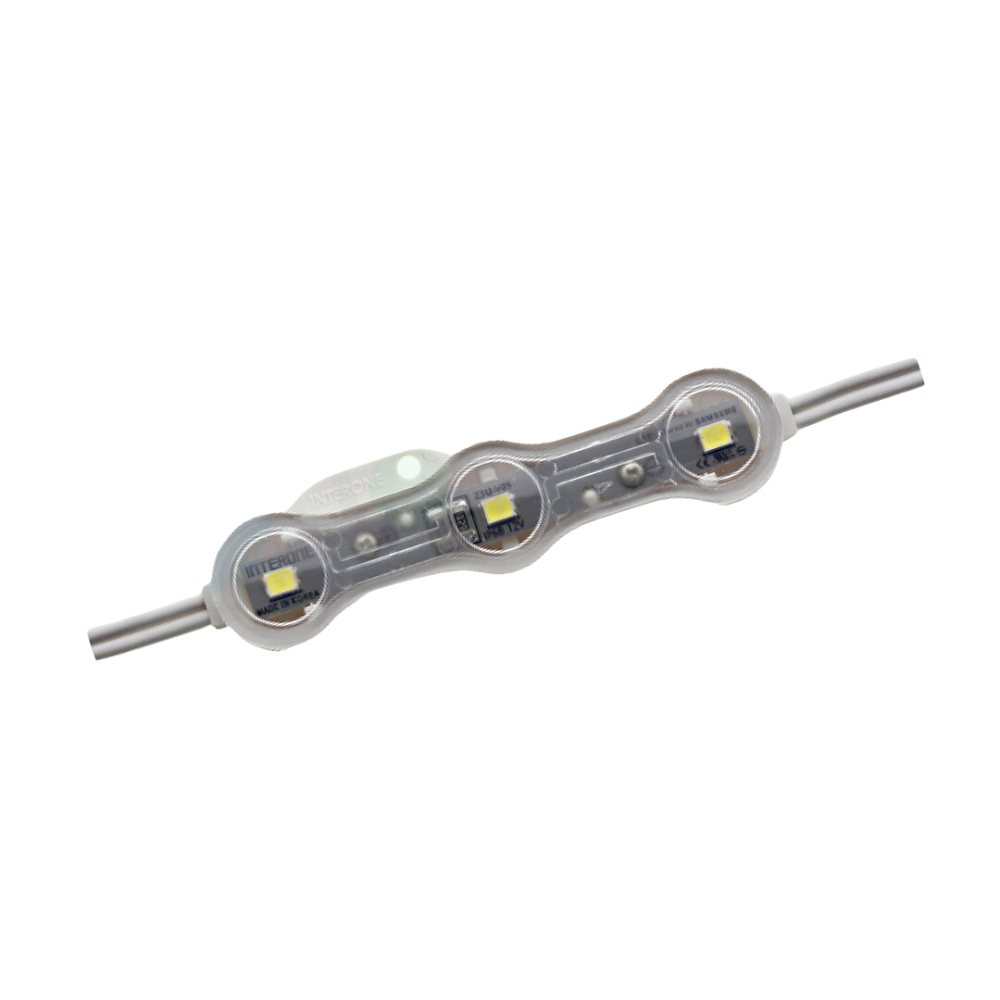 LED 3 Bóng INTERONE 65K Thiết kế giống như các loại led module hàn quốc ánh sáng TRẮNG 65K, gồm thân led bằng nhựa chắc chắn và phần chip led được bao bọc bởi lens thấu kính trong suốt có tác dụng bảo vệ led chip chống bám bụi và bám nước đạt chuẩn IP68 và tăng cường góc chiếu sáng tới 140 độ.
